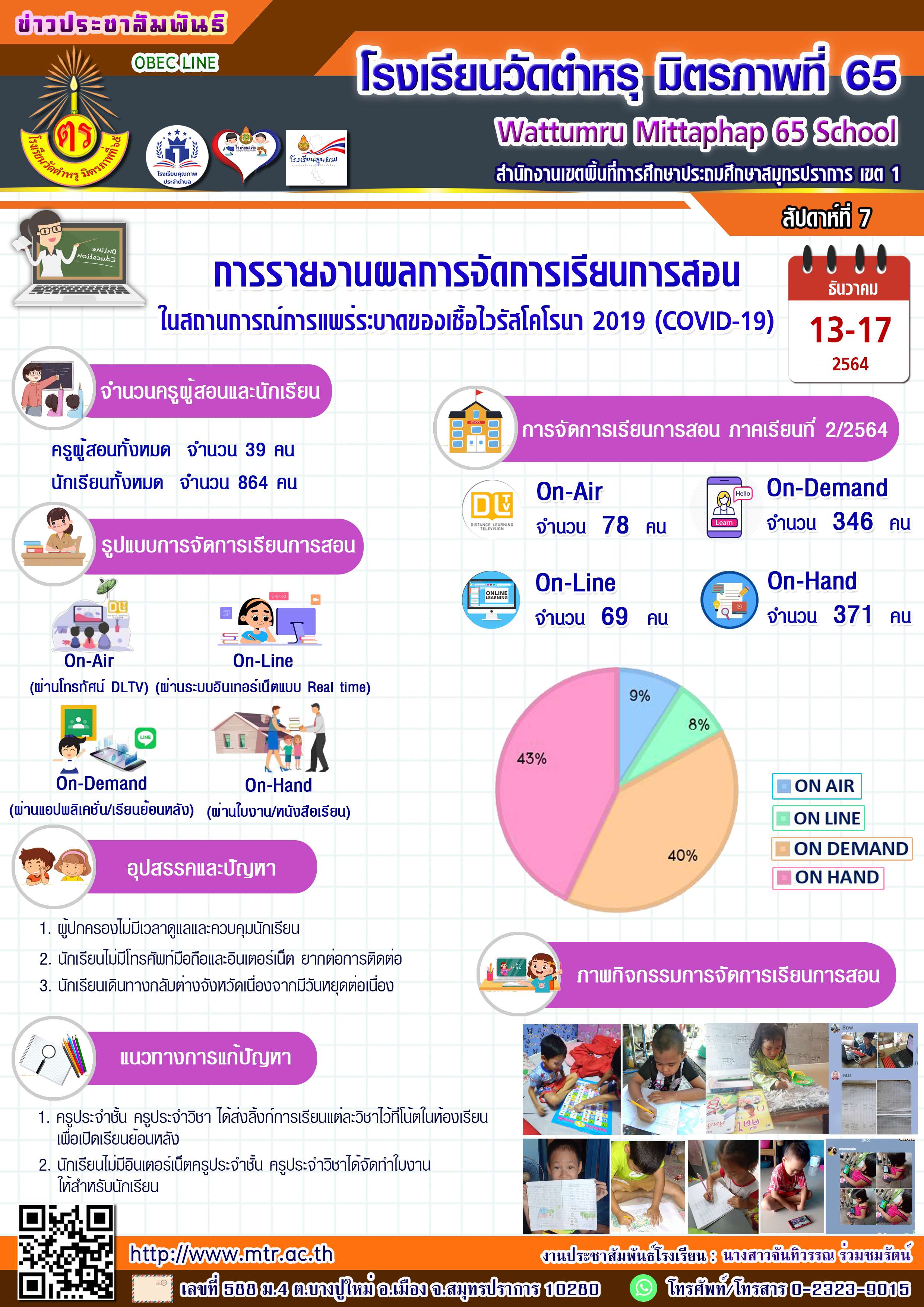 การรายงานผลการจัดการเรียนการสอน ในสถานการณ์การแพร่ระบาดของเชื้อไวรัสโคโรนา 2019 ในระหว่างวันที่ 13-17 ธันวาคม 2564