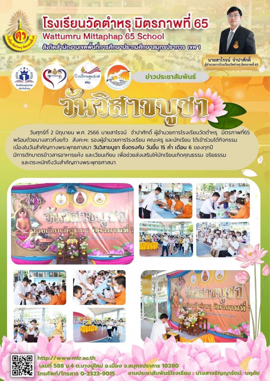 วัดตำหรุ  มิตรภาพที่65 พร้อมด้วยนางสาวกิ่งแก้ว  สังคะหะ รองผู้อำนวยการโรงเรียน คณะครู และนักเรียน ได้เข้าร่วมได้กิจกรรมเนื่องในวันสำคัญทางพระพุทธศาสนา
