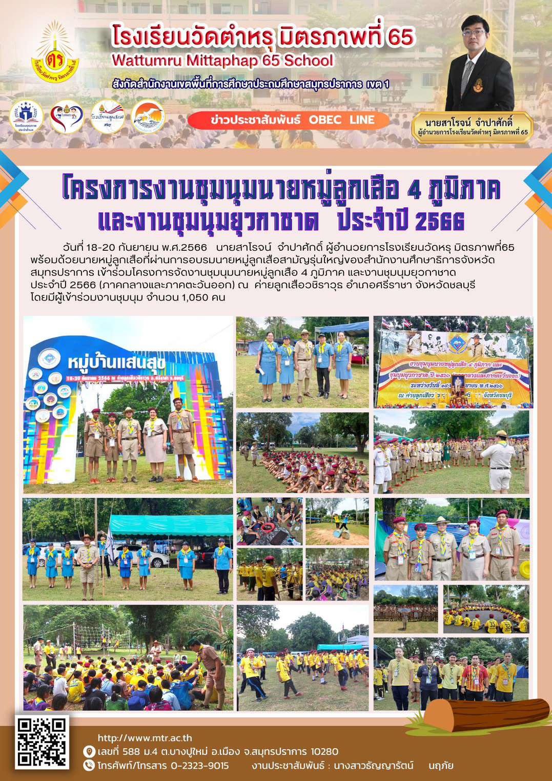 เข้าร่วมโครงการจัดงานชุมนุมนายหมู่ลูกเสือ 4 ภูมิภาค และงานชุมนุมยุวกาชาด ประจำปี 2566