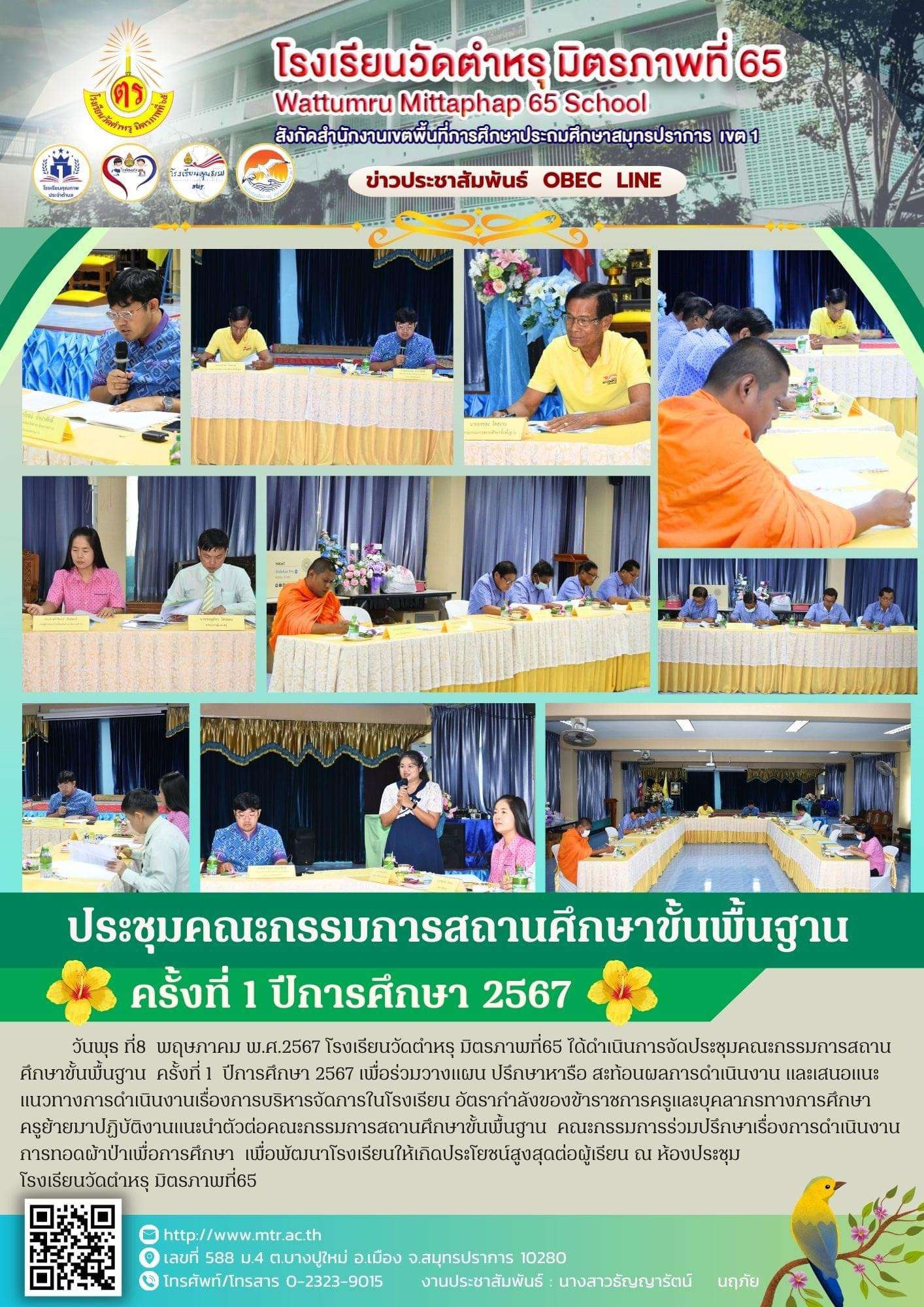 ประชุมคณะกรรมการสถานศึกษาขั้นพื้นฐาน ครั้งที่ 1 ปีการศึกษา 2567