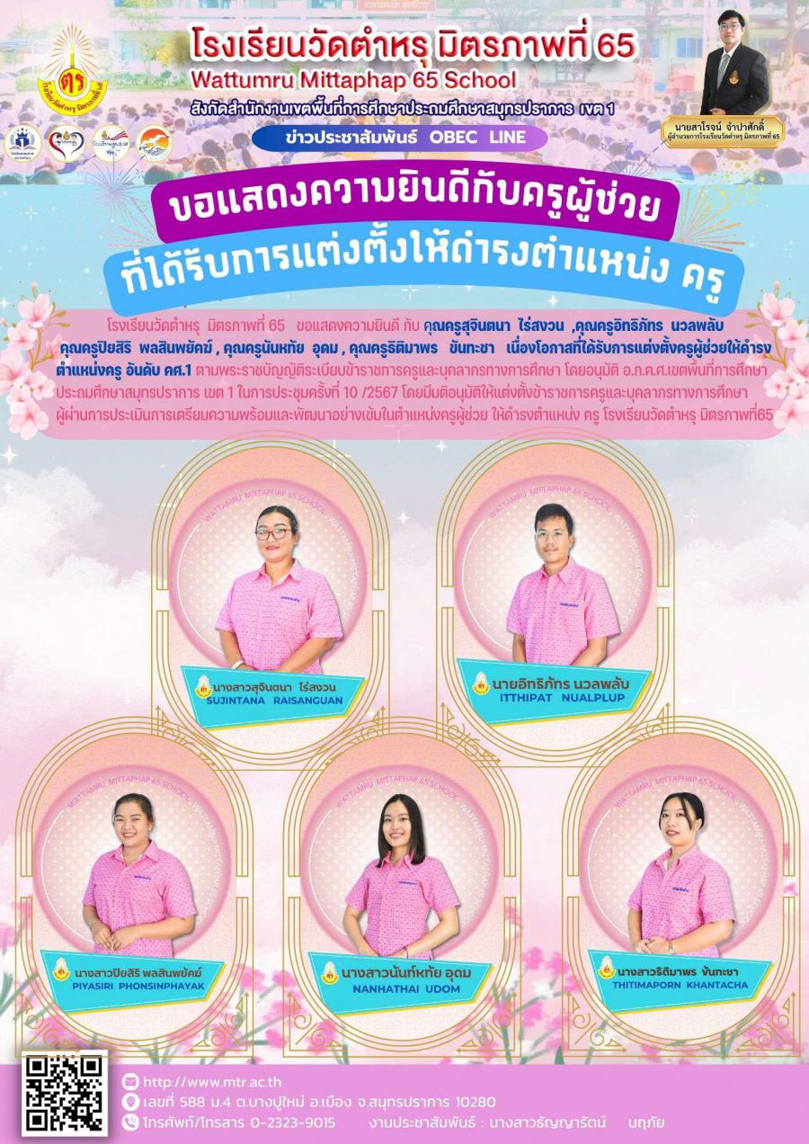 แสดงความยินดีครูผู้ช่วย ที่ได้รับการแต่งให้ดำรงตำแหน่งครู