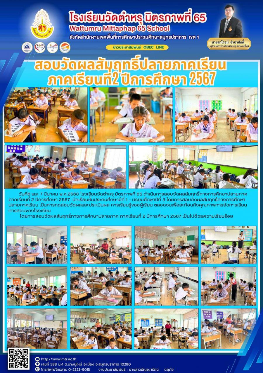 โดยการสอบวัดผลสัมฤทธิ์ทางการศึกษาปลายภาค ภาคเรียนที่ 2 ปีการศึกษา 2567 เป็นไปด้วยความเรียบร้อย